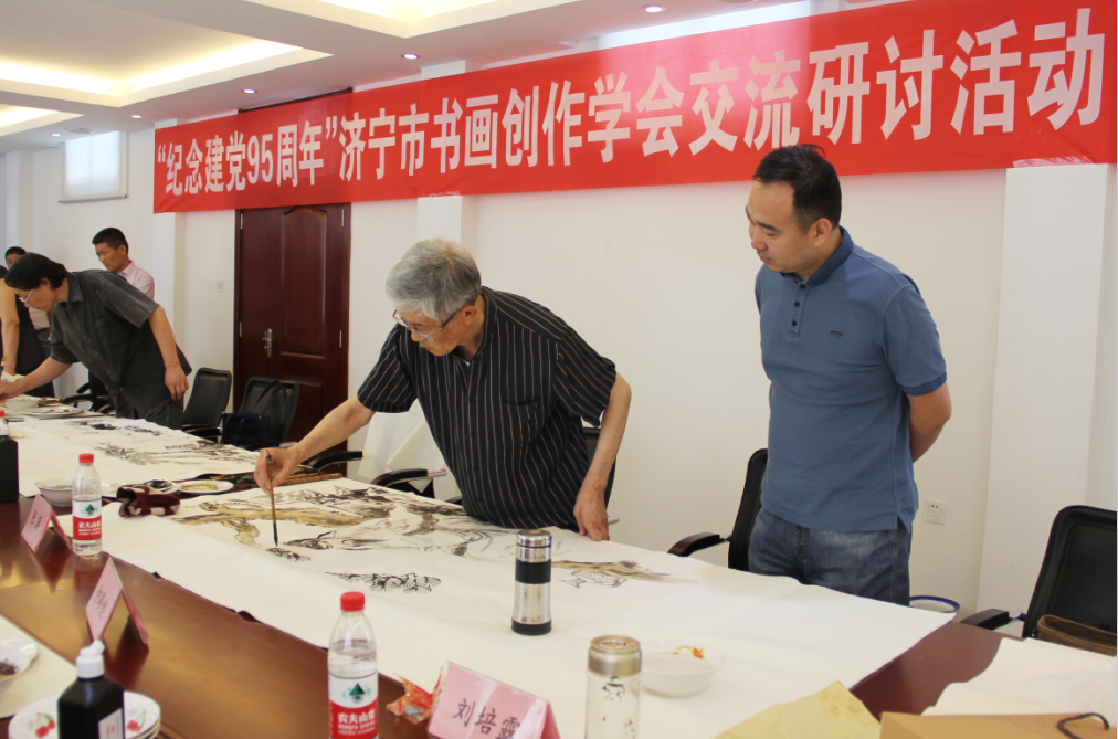濟(jì)寧新聞網(wǎng)6月20日訊(濟(jì)寧臺(tái) 蔡珂珂)近日,慶祝建黨95周年濟(jì)寧書畫創(chuàng)作學(xué)會(huì)交流研討活動(dòng)在心心酒業(yè)舉辦,原市級(jí)老領(lǐng)導(dǎo)、濟(jì)寧書畫創(chuàng)作學(xué)會(huì)名譽(yù)會(huì)長(zhǎng)高建剛出席研討會(huì)。濟(jì)寧書畫創(chuàng)作學(xué)會(huì)會(huì)長(zhǎng)魏延俊主持會(huì)議。濟(jì)寧孔孟書畫院院長(zhǎng)、濟(jì)寧書法家協(xié)會(huì)主席、濟(jì)寧市美協(xié)主席、濟(jì)寧市青年美協(xié)主席等多位書畫家參加研討交流,大家共同暢談黨的輝煌歷程,共同交流書畫創(chuàng)作,暢談美好未來(lái)。