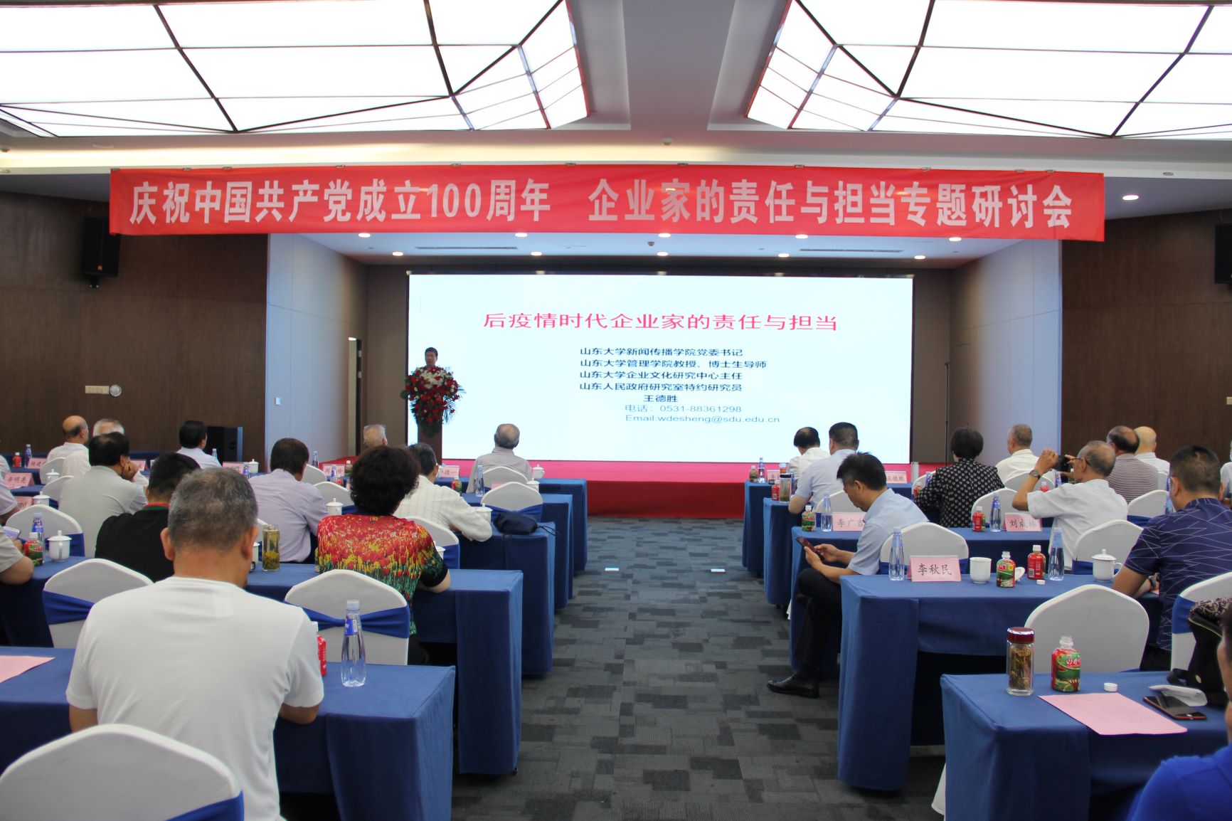 專(zhuān)題研討會(huì)上,濟(jì)寧市國(guó)際國(guó)內(nèi)公共關(guān)系協(xié)會(huì)會(huì)長(zhǎng)、山東大學(xué)濟(jì)寧校友會(huì)理事長(zhǎng)韓宇以《后疫情時(shí)代企業(yè)家的責(zé)任與擔(dān)當(dāng)》為主題進(jìn)行了分享。重點(diǎn)分析了后疫情時(shí)代復(fù)雜多變的國(guó)際國(guó)內(nèi)形勢(shì),剖析我國(guó)的應(yīng)對(duì)策略,強(qiáng)調(diào)了企業(yè)家在經(jīng)濟(jì)發(fā)展中的重要作用,明確了企業(yè)家的責(zé)任與擔(dān)當(dāng)。企業(yè)家在推動(dòng)高質(zhì)量發(fā)展,深化供給側(cè)結(jié)構(gòu)性改革,推動(dòng)改革創(chuàng)新,實(shí)現(xiàn)產(chǎn)業(yè)基礎(chǔ)高級(jí)化、產(chǎn)業(yè)鏈現(xiàn)代化,加快培育完整內(nèi)需體系等方面,肩負(fù)著重要的歷史責(zé)任!弘揚(yáng)企業(yè)家精神,是企業(yè)家實(shí)現(xiàn)責(zé)任和擔(dān)當(dāng)?shù)暮诵呐c強(qiáng)大的動(dòng)力!